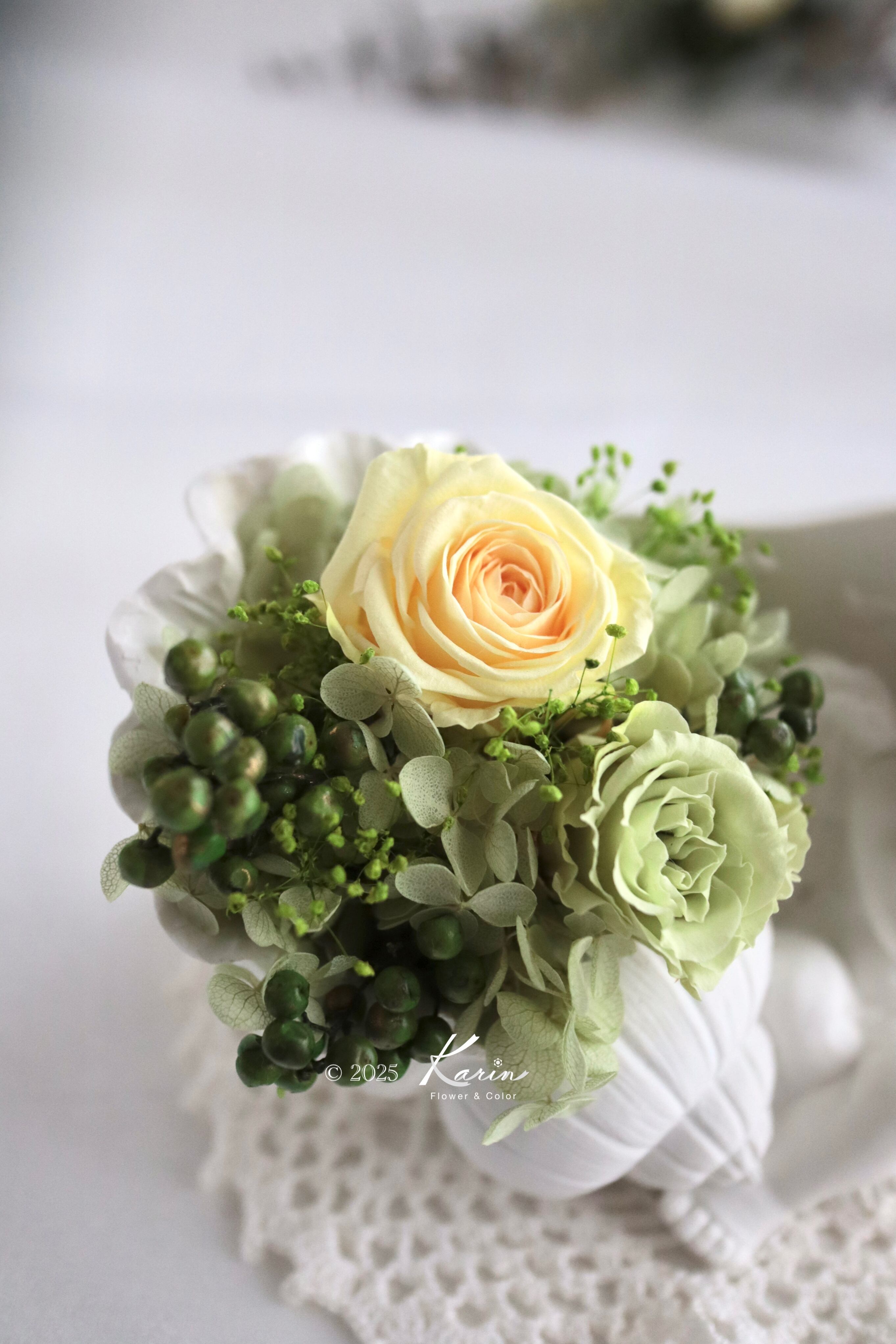 ・使用している花材は同じでも、ロットや生産時期により色味やお花の形、大きさ、バランスに若干の違いがある場合がございます。