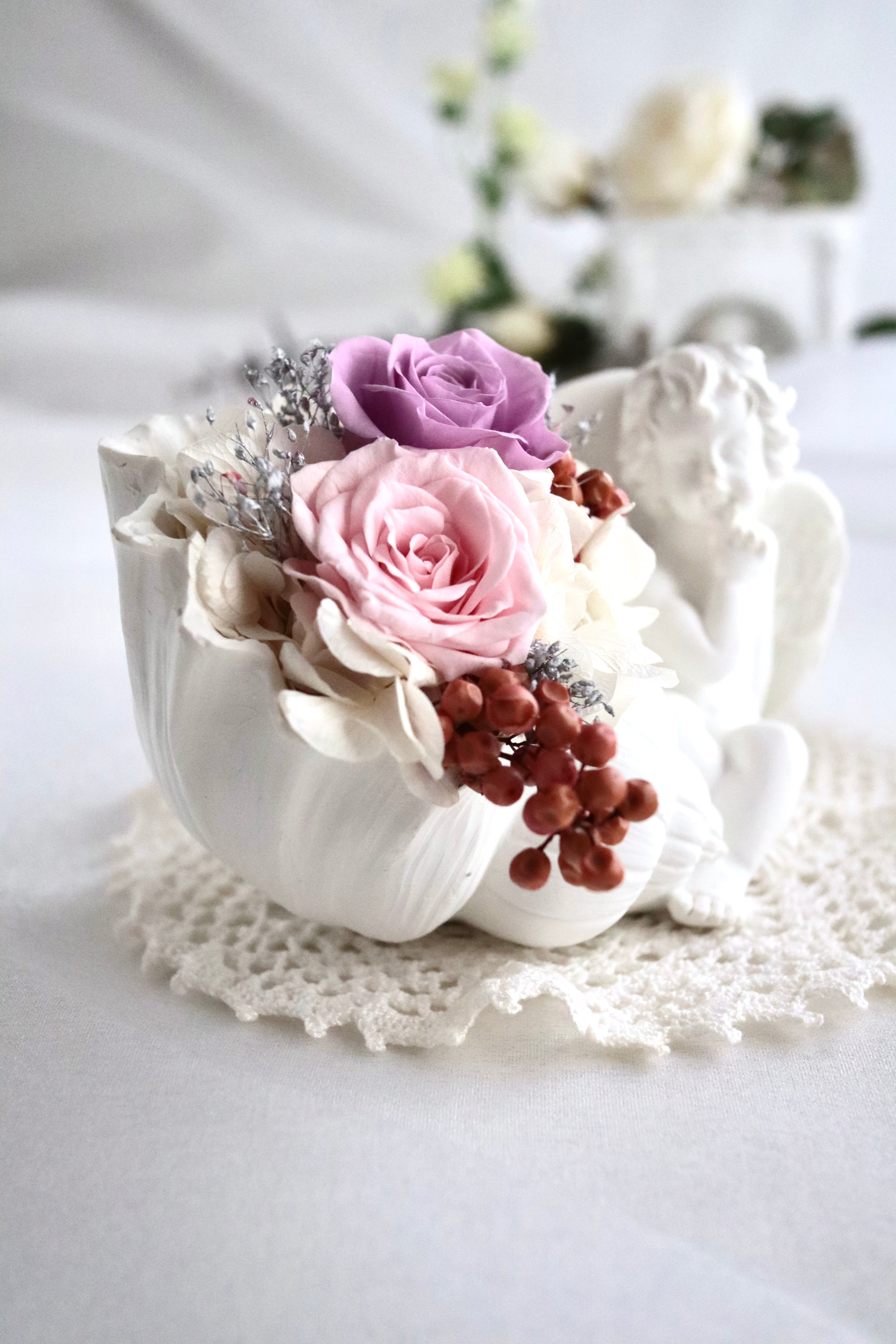 ・プリザーブドフラワーは非常にデリケートですので、お取り扱いには十分ご注意ください。